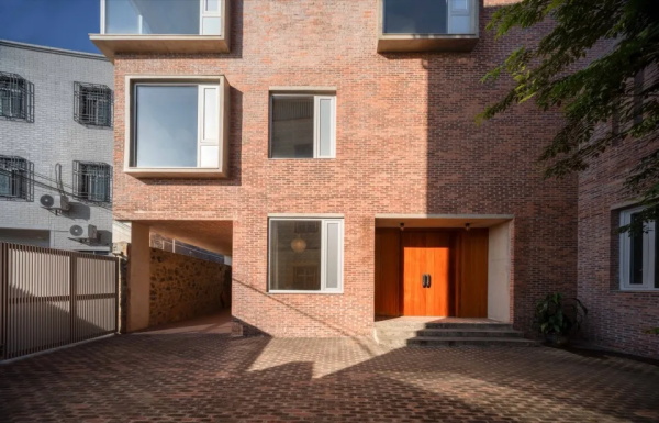 红砖和钢筋混凝土是当下村里自建房使用最广泛也是相对经济的材料。我们延续时下材料的使用,但希望呈现传统朴素建造所带来的美感和建造的可读性。建筑采用和相邻住宅一样的简单形体,但通过建造材料的选择和对窗户洞口比例的控制来呈现自己的质感和气质。