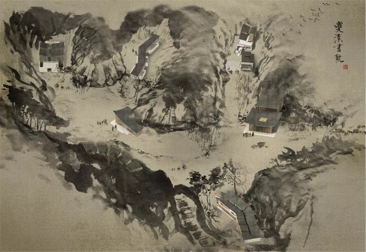 古人可以卧游,通过这种心历去体悟自然山水中的哲学。今天我们仍然努力在自然与建筑之间创造某种情景,某种我们能通过建筑与自然对话的情景。或许这种情景就隐藏在双溪书院的环境之中吧,游走在这幽邃的山谷之中,小溪之畔,很容易使人想起南宋平江文人邹輗的诗句:花阴不正月将西,欲到溪边步懒移。坐对前山无一语,此心惟有古人知。