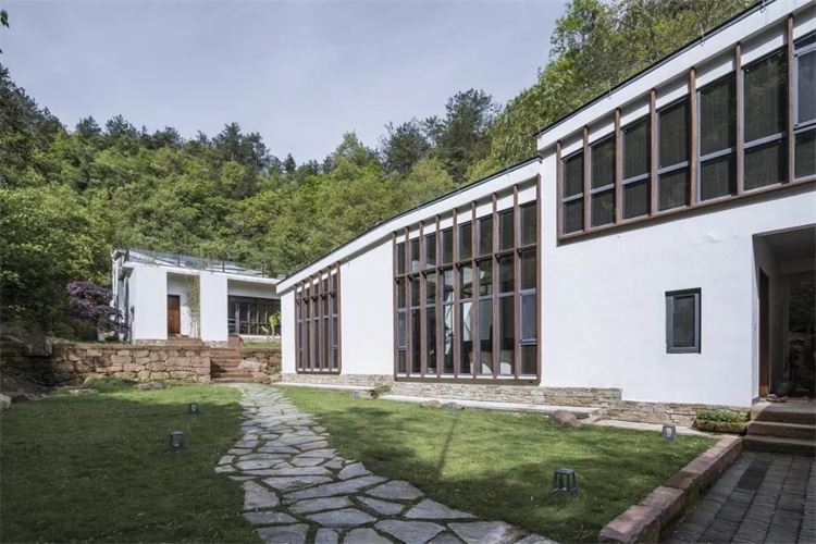 于是,双溪书院的七个单体建筑,除了接待大堂(也做餐厅)和茶室两个公共功能的建筑外,都被分别隐藏在四条张开的山谷内,互不相望,各自以各自独特的视角存在,这种关系有些像传统山水画中的散点透视,每个局部自成一体,又能够“拼贴”成一幅完整的画面。
