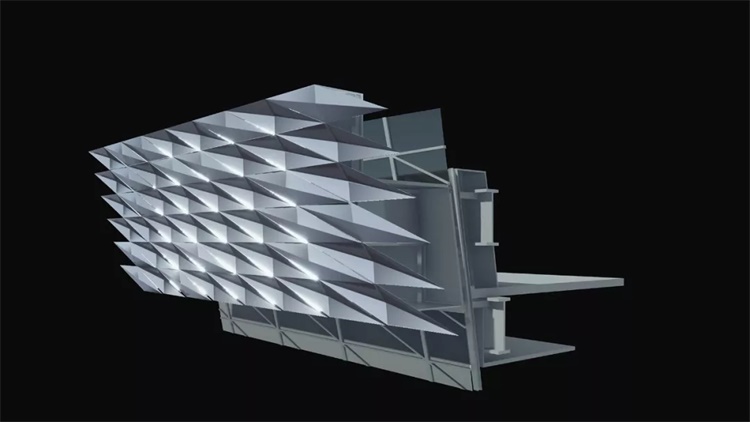 建筑造型中的螺旋廊道直接反映设计理念的真实逻辑,而立面语言则从钱塘江古海塘五纵五横的模块化筑塘法中得到启示。