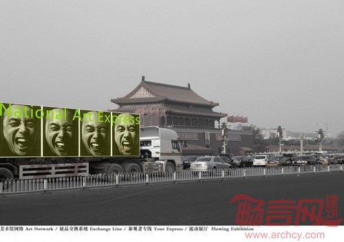 建筑师的策略就是避免国家美术馆成为一个远离城市中心的孤立个体,或者单纯地成为展览场地的新成员,而是把它变成进一步推动和发展城市艺术展览的网络服务器和终端平台。这个艺术网络出现、存在、并且服务于城市的现实空间与日常生活。提议包括三个内容:建立一个国家艺术捷运(National Arts Express)系统;使国家美术馆建筑生产具有张力的社会公共空间,广场上散布的艺术箱体与国家艺术捷运系统相兼容共同运作;美术馆建筑围合了一个空旷的内园,它可以通过架空的底层自由到达,这个内园是个不定形的空间,作为一个超越现实空间的“别处”,等待被艺术品和艺术事件不断地填充。