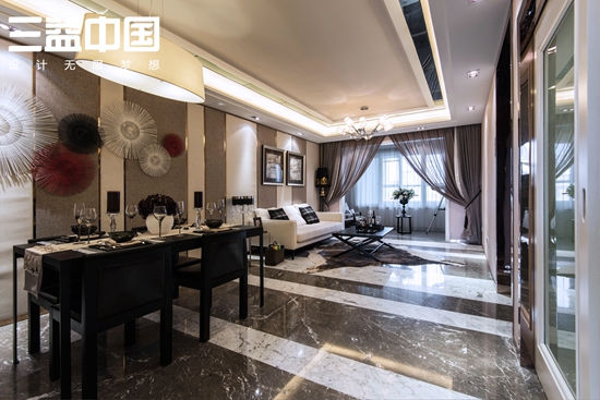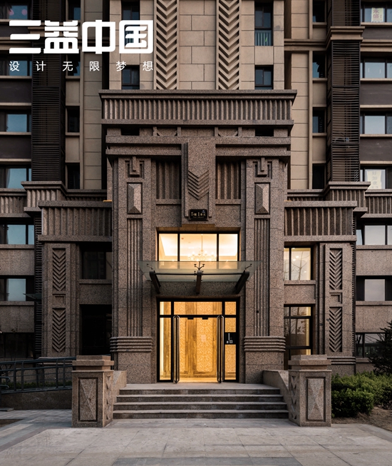 整体风格融汇新古典主义与现代艺术精粹,建筑整体体轮廓高耸挺拔,立面效果庄重典雅,形成建筑高贵内敛的艺术气质。与此同时,项目也注重细节的雕琢,公共空间5.8米挑空精装大堂设计,突显新颖、华丽、尊贵的艺术感。