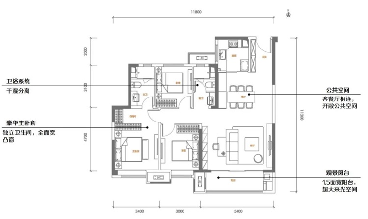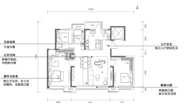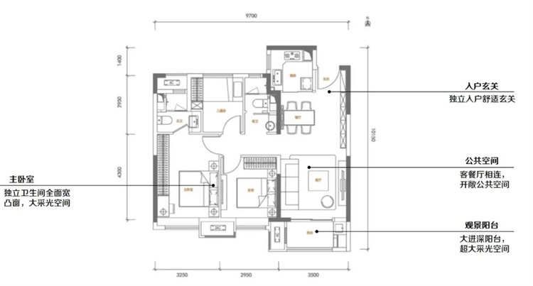 作为容纳生活的场所,西安中粮•天悦的户型设计充分放大了“厅”作为家庭生活核心的地位,以“宽、明、透、变”的理念,以当下主流的多样化家庭结构的90~140㎡面积段为主要产品,为多样化的家庭生活活动提供场所,以空间为锚点提升家庭凝聚力,并充分考虑后疫情时期健康对于空间的需求。