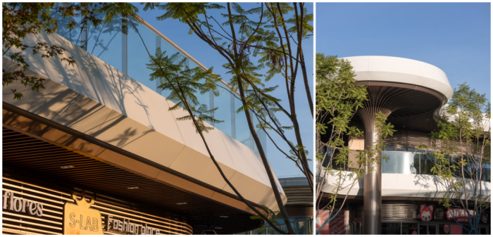 我们以云为灵感的造型让整个商业外部视觉既具整体性又富有变化,最大限度的发挥了沿街展示面的昭示性,为垂直密集的城市和主干道之间提供了视线和空间的缓冲。