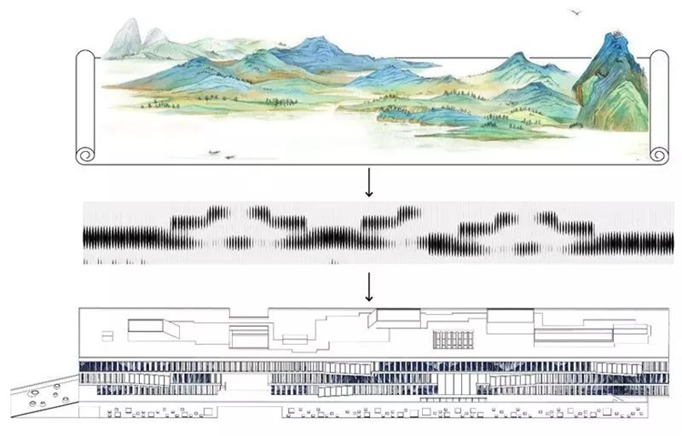 徐徐展开的建筑立面如数字编码丰富多变,流动的信息恰似山水形态化成凝固建筑,立面肌理虚实渐变,宛若一幅画卷展示着校园形象,灵动而富有层次。