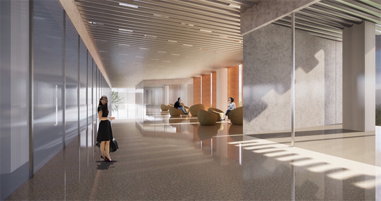 实验室参观走道与半开放研讨空间室内效果图