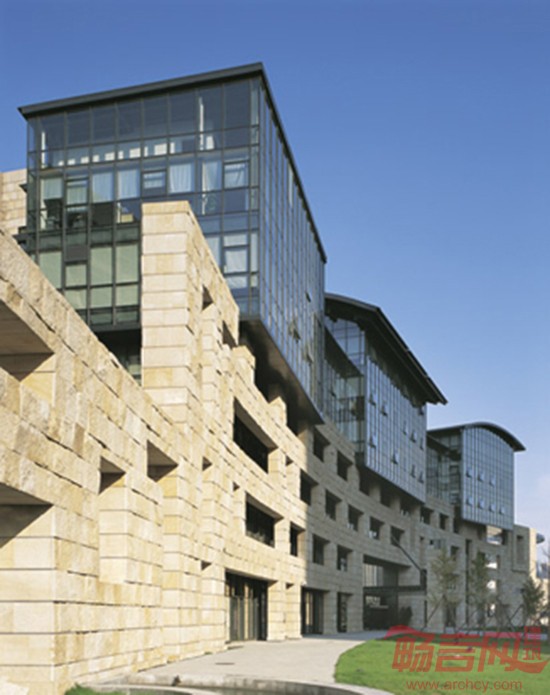 设计理念:坐落于上地核心区的环洋大厦,旨在为员工打造远离城市喧嚣,并具浓郁中国文化特质的企业总部。设计团队以长城作为设计灵感来源,采用大体块毛石作为基本建筑材料,并在中国人对“墙”的惯有理解基础上融入了老北京四合院这一地域性元素,打造了风格独特、极具艺术气息的建筑立面。