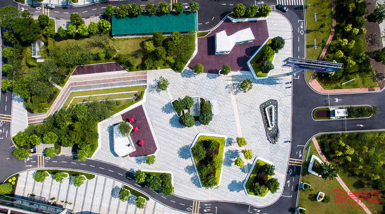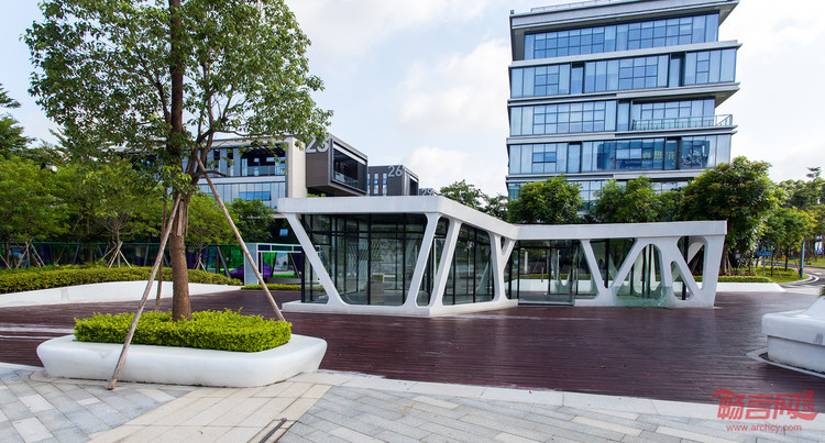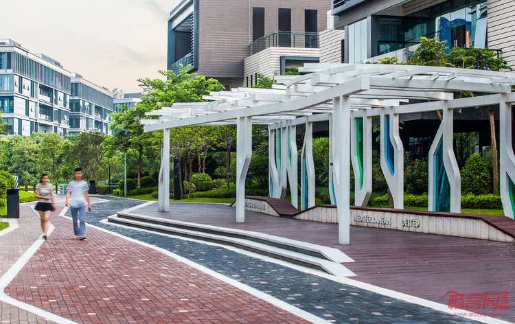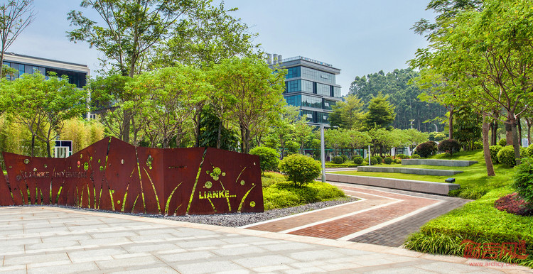 联科广场作为园区的主要人行入口和形象的窗口,在景观处理上采用现代、简洁的线条构图,结合精致的细部处理,营造简洁、品质的入口空间形象。