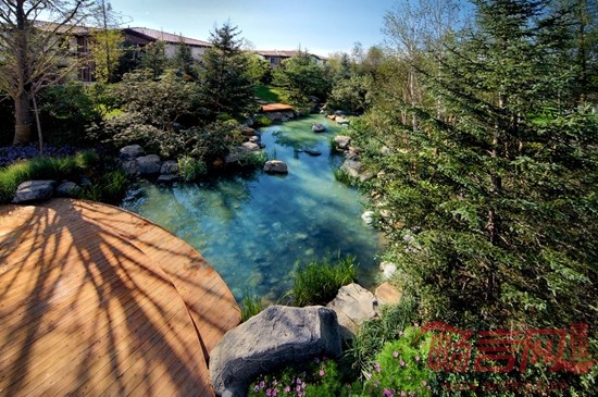 小区的南北绿化带与东西向坡地绿化相互交织,沿小区做抬高绿地与小区交通相隔离,避免了机动车对住户及行人的干扰。组团绿化与南北绿化带相互交融补充,将私家绿地与公共绿地相对独立又彼此交融。绿化景观与植被相结合的布置手法拉近了景观绿化和人的关系,形成了你中有我、我中有你的有机体。
