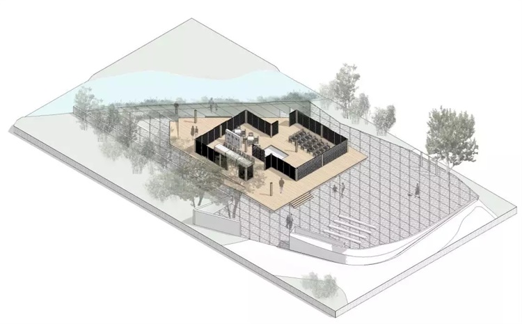 设计师把南北地块作为一个整体考虑,场地中现状村路区域不设计任何设置,以确保村路的通行。南侧、东侧设砖砌矮墙,向西北侧山体打开,形成场地空间界定。