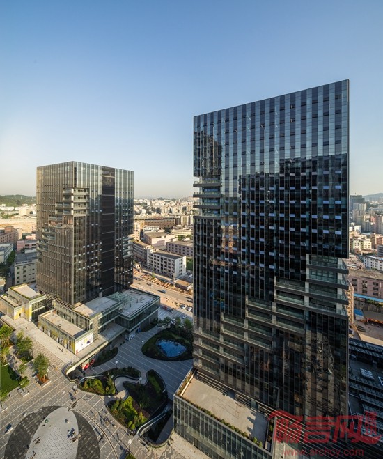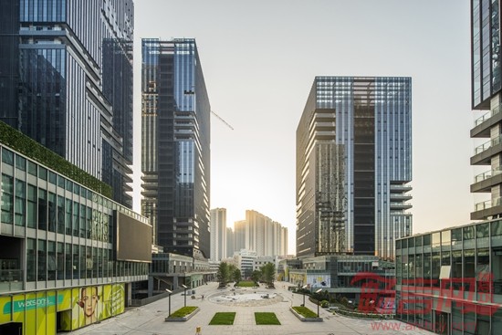 总而言之,在整体设计上,力求简洁,保持形体的刚性力度的同时,在低层人视视线上拥有韵律各异的横向细节,更好地体现“天安云谷”产业综合体的城市地标性,风格突出整体性、时代感,是一个合乎人文要求的新型产业社区。整个办公塔楼主要采用框架式幕墙系统结合局部玻璃幕墙系统。