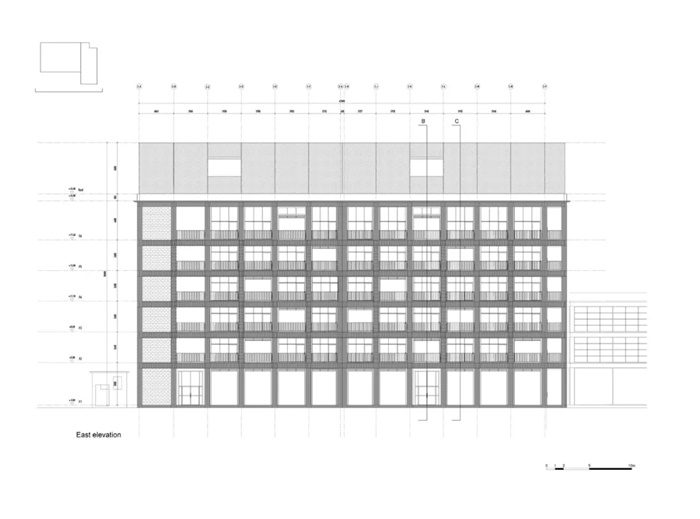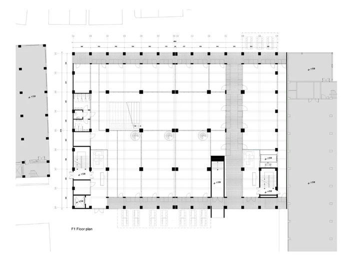 主要改造措施是对旧建筑进行简单的清洗和翻新。使用新的透明涂料技术,并对旧结构进行抗老化处理。这保留了建筑物的历史痕迹,使由于残破而暴露的混凝土框架实现了可持续性和循环经济的原则。新办公室的外墙缩进框架内,形成与同事邂逅交流的外围阳台流线。外墙是玻璃的,阳台的部分地板也采用玻璃砖,成为建筑的入口标识。