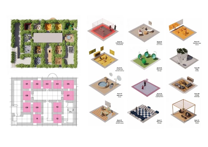 第三个改造措施是屋顶上的“绿色之家”。从楼梯出来,绿色的竹林映入眼帘,其中设置了各种便利设施和活动。“竹林迷宫”的设计在屋顶形成不同的功能分区,绿色功能区包括舞蹈室、餐厅、阅读室及许多其他用于休闲聚会的主题场所。