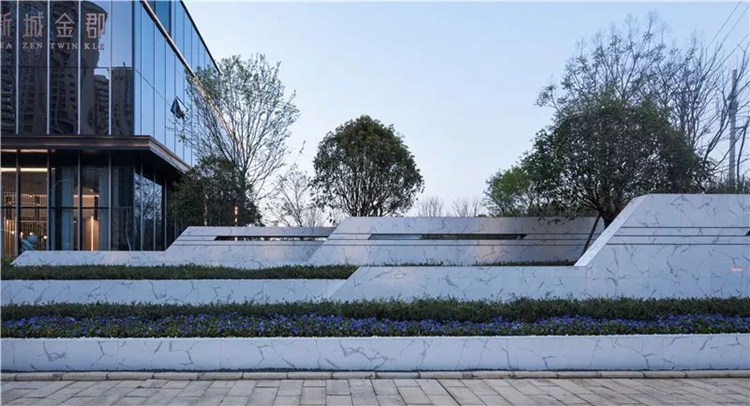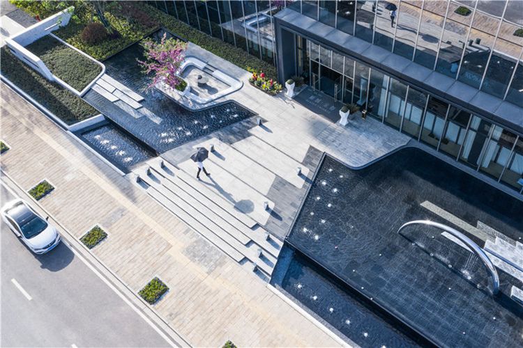 景观设计以一种低调质朴的姿态,呼应场地和建筑,以“隐”为主题,营造“物我隐境,极简成作”的日式禅意空间氛围,展现“大隐隐于市”的极简生活美学。