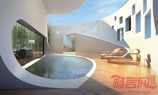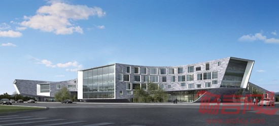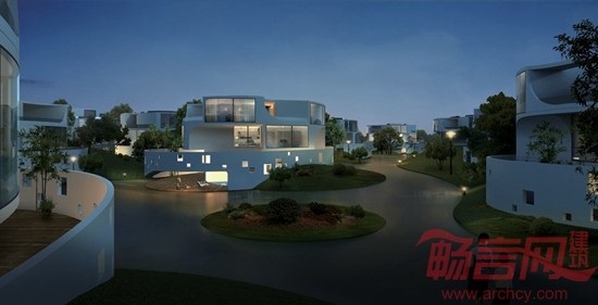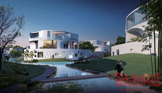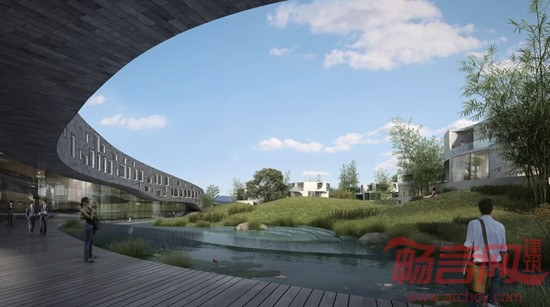 整体建筑规划分为两大部分,一部分为以研发中心和会所住宿为主,餐饮会议娱乐休闲为辅的有机整体的综合楼部分;另外一部分为组团分布的别墅式酒店,其间形成大型公共绿地,从而形成具有流动性和灵活性、人与自然和谐共生的空间状态。