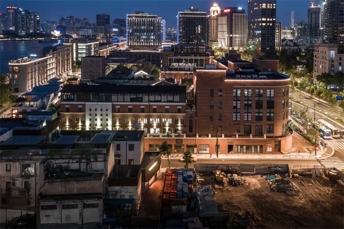 水舍位于上海南外滩老码头新规划区内,原有的三层建筑是上世纪三十年代的日本武装总部,十年前增加第四层改造为精品设计酒店。改造保留了原有的混凝土肌理,增加了耐候钢结构,使用特色表皮材料,与黄埔江的船舶形成工业空间的连结,是中国城市化过程的一个回忆。