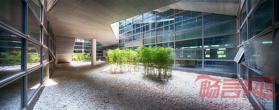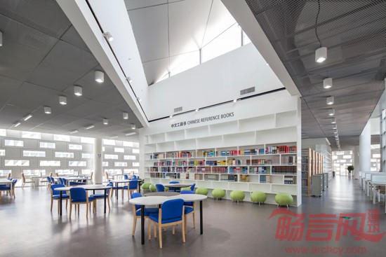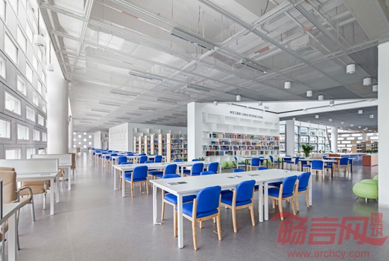 二层游廊自西向东途经书吧、天井、多功能厅、竹园、阅览区、半室外台地,最终到达东面的百树园。流线交叉给人们的日常穿越带来相遇和交流,停留、阅览和参与学术生活自然成为生活的一部分。使实体图书馆有机会比虚拟阅读更鲜活有趣。顶层是供开架阅览使用的近3800平方米的开敞式大空间。为便于模数化的藏书区和阅览区日后互换,整层结构板均按藏书区荷载来设计,柱跨统一为8400×10800(mm)。