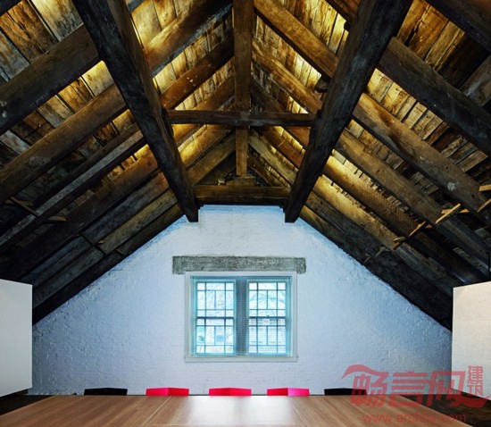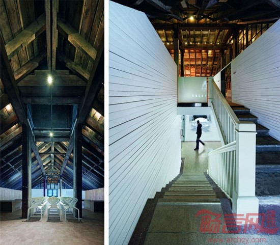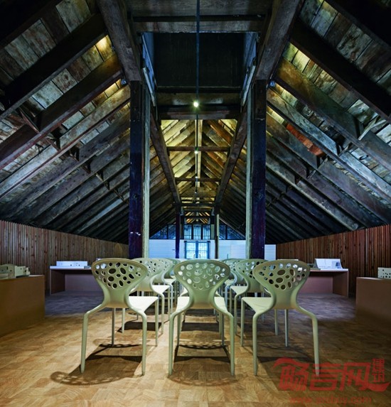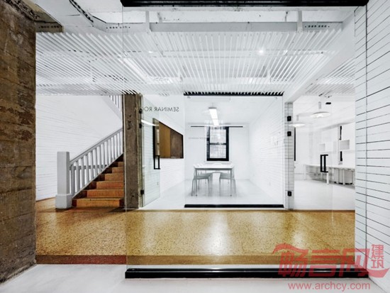 南京大学戊己庚楼建于1930 年,作为金陵大学古建筑群的一部分,是国家文物保护单位。戊己庚楼是典型的民国建筑,采用了中西结合的大屋顶形式,建造方式则为局部混凝土框架结构,隔墙采用木板条。设计拆除了部分木板条隔墙,将原有单元式的宿舍格局改造成空间较为开放的建筑设计工作室和研究室,建筑空间里所有具有时间记忆痕迹的元素都被精心地保留下来,新加入的部分被处理成匀质的背景,突出了建筑的历史感,形成了记忆的场所。新与老相互映衬,相得益彰。