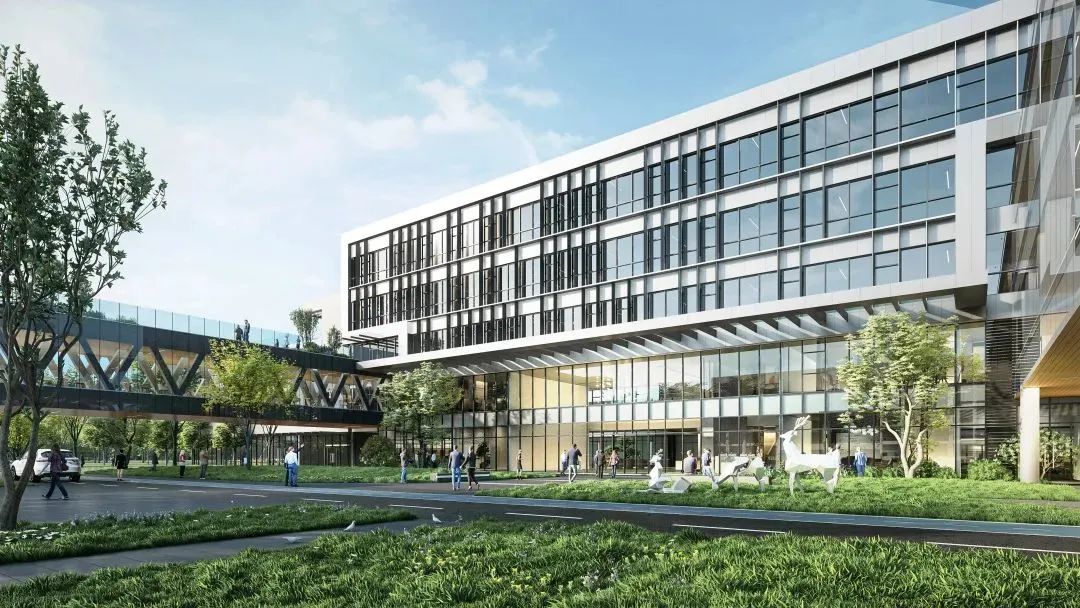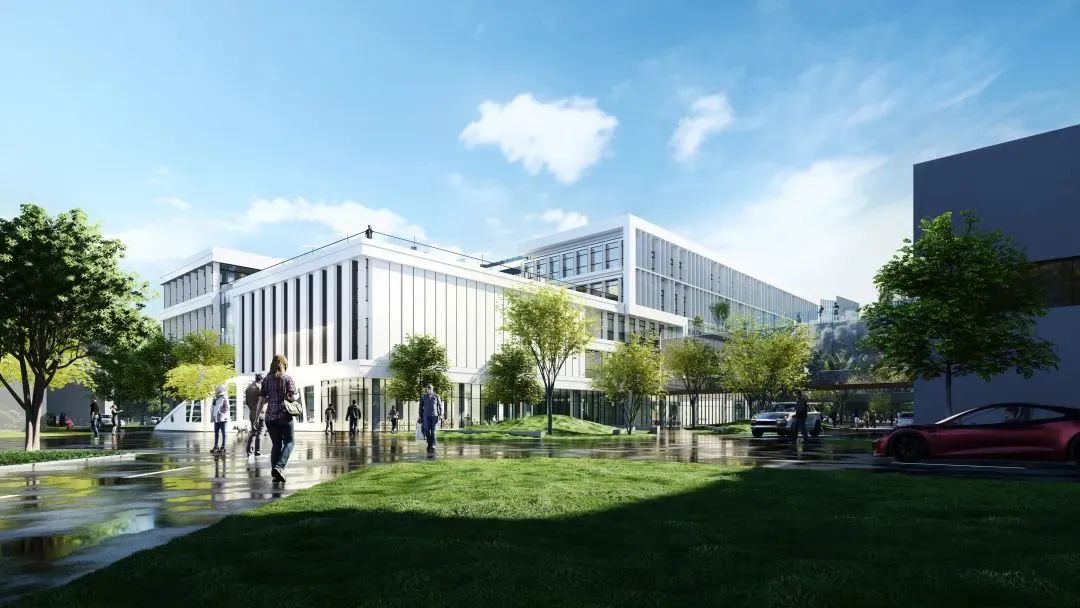 多层建筑的形态不仅完美与既有建筑相融合,也因标准层每层使用面积较大,建筑整体利用率与经济性高。建筑外立面材料选用既有建筑的铝板幕墙与玻璃幕墙,外立面形象与既有建筑和谐共生形成一个整体的园区形象。