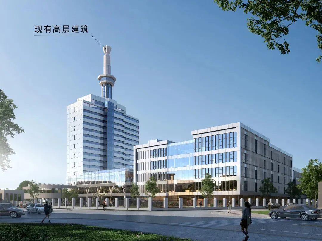 设计以“新老建筑一体化”为设计理念,新建信通大楼南侧有一栋十五层的高层建筑作为整个公司的主要形象展示面及办公管理场所。新建建筑充分体现了“新老建筑一体化”和谐共生的设计理念,通过两处连廊,在空间和功能上与老建筑形成一个和谐完整整体的同时,高度结合原有的树木环境,围合出丰富的景观庭院,实现了新老建筑形态和功能的一体化,建筑与环境的一体化。