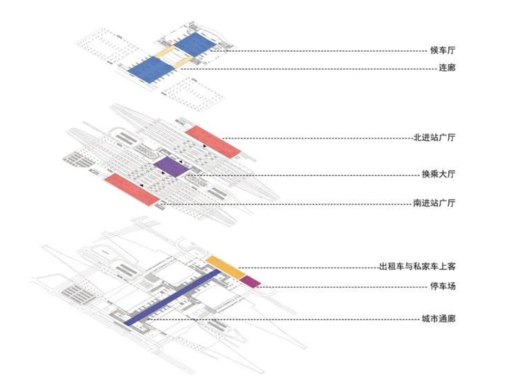 本方案建筑外形简洁,寓意明确,体现出鲜明的地域特点。设计比较充分的体现了交通建筑的特征,空间通透连贯,尤其是综合换乘交通大厅,作为人员密集的区域,空间导向性和视觉方向感都很强,不容易迷失方向。