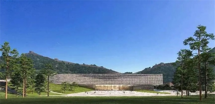 改造提升设计以“最小干预”为原则,将博物馆全部至于原有台地一侧,以巍峨的形象横亘在原有台地裂痕处,以建筑修复山体,将自然融入建筑空间之中。面向入口方向展开立面画卷,最大化地预留出广场组织游客休闲活动及室外展览,使博物馆不仅成为展示长城文化的殿堂,更是游客来到八达岭的第一站——长城客厅。