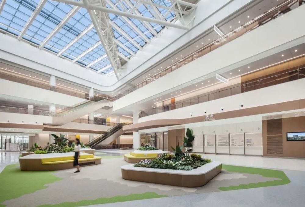 500床位的嘉兴凯宜医院位于浙江省嘉兴市经济技术开发区内,为当地打造了一个医疗设施的新标杆。建筑面积110000㎡。进入医院大厅,人们首先会来到一个采光充足、通风良好的中庭。设计受中国传统院落启发,采用基础的布局,将医院的核心功能区布置在采光充足的中庭周围,不仅优化了动线,还缩短了医院各部门间的移动距离,为患者与访客提供更加简单明了的导视标识。