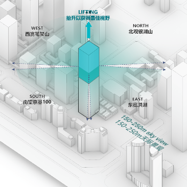 项目位于紧邻红岭的金融产业带,周边建设条件成熟,毗邻地铁6、7、9、14号线以及未来规划的17、24号线,是多区连接的核心位置。“地块是福田旧改的明星区域,周边分布着众多深圳重点高层旧改项目,同时还有银湖山、笔架山、荔湖、洪湖环绕四方,犹如车水马龙中的世外桃源。设计的灵感来源于东方思想:聚气而交汇,城市中的山,水,气如丝带一样,各种元素相互盘旋而上升。同时盘旋上升呼应了城市四象的美好景观。” Aedas执行董事胡庆峰如是说。