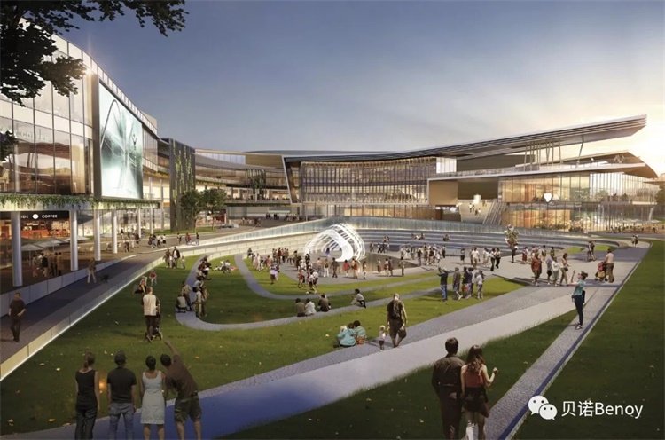 将基地划分为城市界面及海滨界面; 在城市界面设置拥有完整体量的主力商场,大约30,000 - 50,000 平方米,四层高的建筑立面可把商业展示面做到最大化,同时营造并突显出商场的主入口氛围。而在海滨界面则打造偏向户外活动氛围的餐饮休闲主题区,设置多座独特的体验式餐饮特色商铺,建筑的灵感来自在海边自由翱翔的海鸥,将海鸥展翅挥舞的动感通过建筑斜面屋顶的独特造型一一呈现出来。