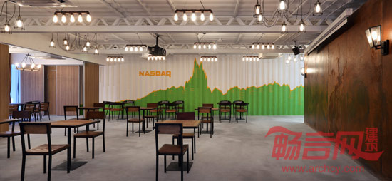 通过同专业厂家紧密配合,箱体墙板采取了双层钢板加保温层的处理,箱体内部照明设备和空调管线系统在工厂进行了前期预制,节省了二次装饰施工的周期。现场施工完混凝土垫块基础后进行了箱体的吊装组合。组合完毕后将早已定制好的门、窗和室内楼梯进行二次组装。后续环节顺利实施了内部空间的施工工作。整个项目的设计到建造过程,充分体现出了集装箱建筑高效、灵活、高回收性的优点。挑战了集装箱单体箱体18米的长度极限和集装箱组合体内无柱空间的可能性。同时探索了集装箱建筑同场地自然环境的融合关系和处理手法。