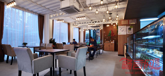 3W龙岗店除了需要设置常规的开敞咖啡区外还希望能够设计相对独立的互联网沙龙区,以满足3W高密度的公开课、读书会等大量活动的场地要求。集装箱作为建筑组件,标准化程度较高,运输与吊装十分方便快捷,可灵活组合内部空间,同时也具有非常高的回收率。基于上述优点我们选用了10组不同规格的集装箱箱体进行整栋建筑的构筑。