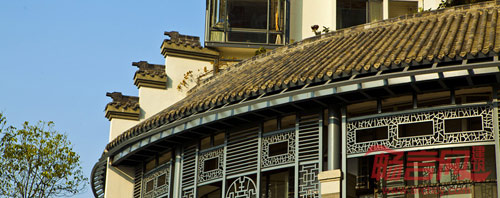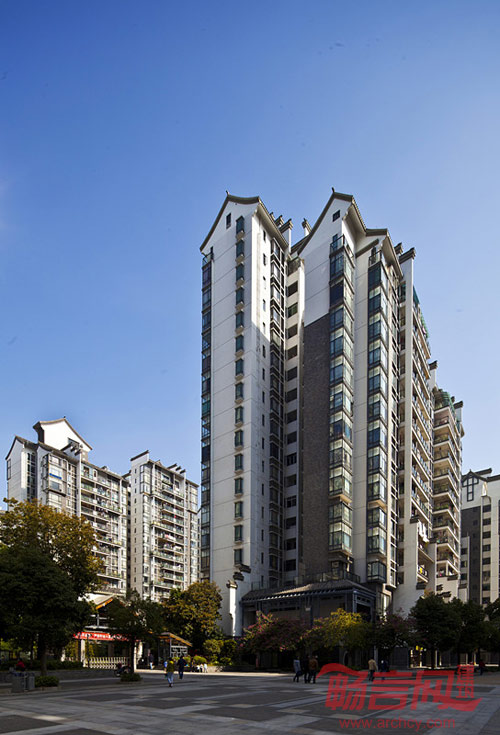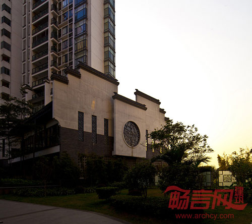 建筑以传统民居——徽派建筑为主调,把最具代表性的风格元素,以现代手法与技术手段来表现“东方人居”。建筑立面重点突出了传统民居“黑、白、灰”的色彩特点,立面风格清新淡雅,淳朴自然。每栋建筑均前有庭后有院,看似独立却又相通,与中心大花园形成相对封闭而又开放的空间。整个小区的建筑延续传统的中式风格,室内装修风格融入中国琴棋书画的淡雅和古典美,让中国传统文化再次得到最好的传承。