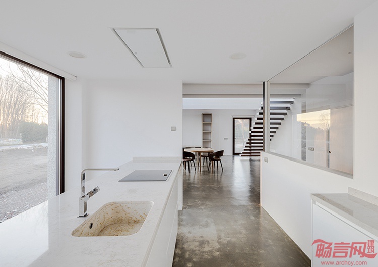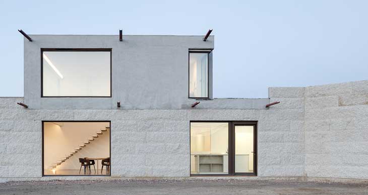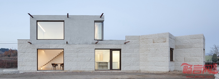 VMS住宅由Marcos Miguelez设计,坐落于一块三角形场地上,周围是综合用地,临近西班牙Leon城郊。场地一侧毗邻小果园,另一边靠近土路,正面朝向一条街道。建筑根据场地条件调整了几何造型,是一座外表大胆的石材建筑。项目采用西班牙传承百年的传统石砌工艺,坚定地保护了室内空间。