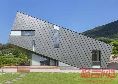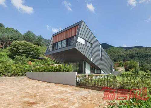 El Salvador住宅邻近首尔,由Praud建筑事务所设计。建筑是一个倾斜的箱子行结构,下方是山地景观。住宅毗邻Chungpyong湖,业主是一对退休的教授夫妇。这座住宅是他们的度假别墅。根据业主要求,建筑选取了安静的环境,方便进行写作、研究和小型研讨会的进行。