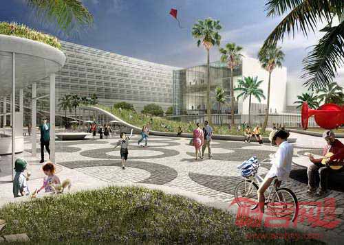 丹麦BIG建筑事务所设计的巨大广场将改变美国迈阿密海滩会议中心——年度Basel迈阿密设计贸易博览会举办地的整体面貌。