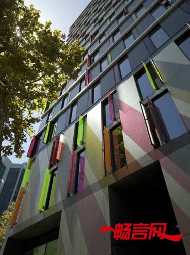 Urbanest学生公寓位于悉尼市中心,它是一座非常亮丽的、具有当地色彩的建筑,它既向人“宣告”了自己是一栋学生公寓,也与当地的建筑风格相互吻合。