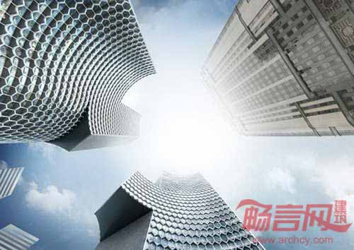 高楼外立面包含六边形窗户,通过悬臂结构设置,楼面层面呈现出后退和前凸的形态。