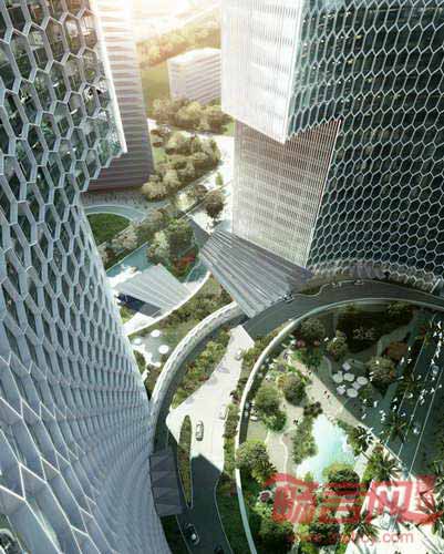 Ole Scheeren设计的双子楼高度分别是186米和170米,前者容纳了600余套公寓,后者将涵盖办公室和酒店空间。