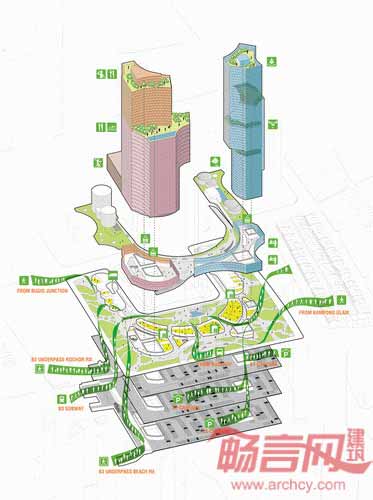 大楼的底层包含了商铺,人行道将与附近的地铁站连接。