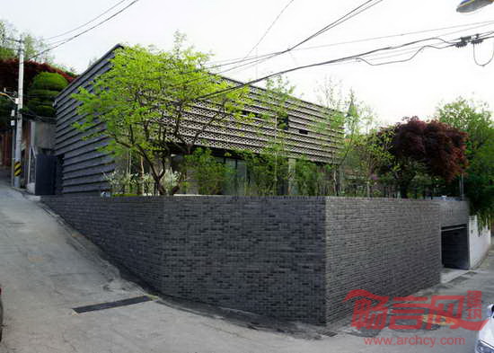 韩国WISE建筑事务所设计了位于首尔的二战女权博物馆。建筑是一个改造项目,将一座30年的旧建筑改造成记录二战黑暗史的博物馆。博物馆旨在纪念二战中遭受屈辱的韩国慰安妇。原本的粘土砖建筑外侧添加了一道穿孔黑砖屏障,遮掩了二层结构。