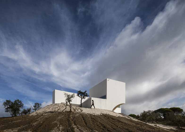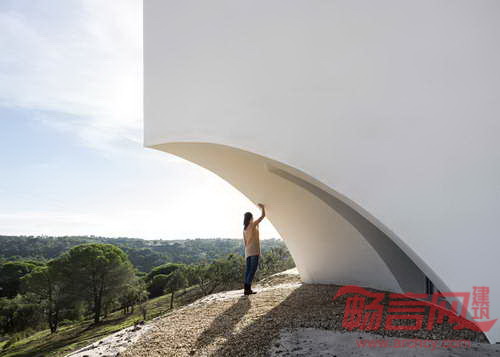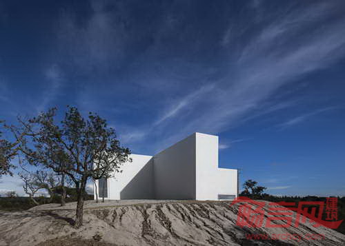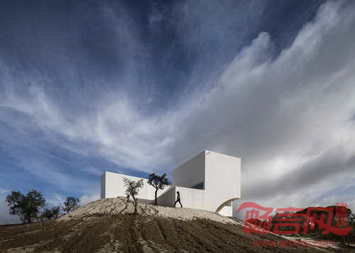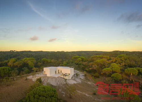 Manuel Aires Mateus建筑事务所设计了位于葡萄牙Fontinha区Melides农村小镇的住宅项目。这座住宅位于山顶,一个角落似乎被削去。两层小屋设计构想是成为俯瞰Fontinha庄园的瞭望点,同时也具有传统庭院住所的隐秘特性。设计师表示,“项目设计考虑到平衡性,一方面属于庭院住宅,另一方面其围合核心朝向天空,开口面对远方的大海。”。建筑占据了十字形的场地。房间依照三个角落布局,长方形露台从中间伸展开来,一侧是游泳池。