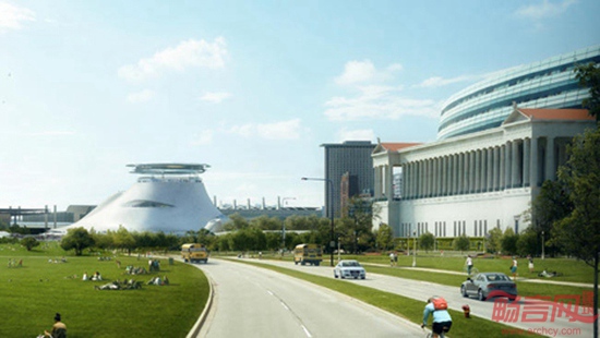 MAD事务所在加哥乔治卢卡斯艺术馆受到芝加哥城市委员会青睐,在投票中成功中标。建筑将容纳著名导演卢卡斯的私人艺术收藏品,预计将耗费4亿美元成本,涵盖白色帐篷结构以及新建公共空间。帐篷结构将有两个顶点,较高一个上方设有光环型掩体,下方带有椭圆形玻璃入口。建筑内部包含展厅、放映室、顶层全景餐厅。