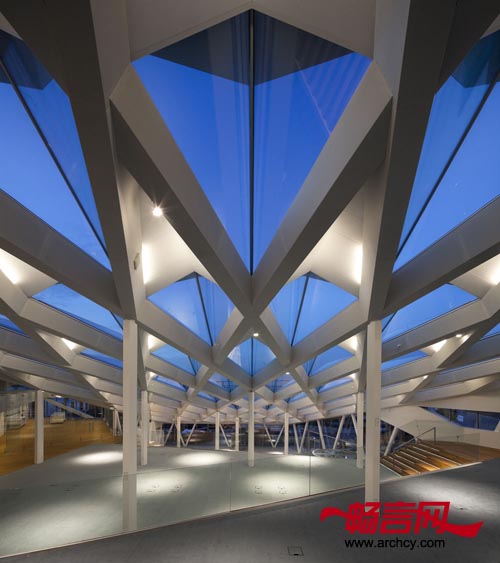 在大楼里面设有一个书店、一个咖啡馆、一个房地产办公室和一个收银台,这使银行楼的一楼成为一个非正式的公共场合。储蓄银行的工作室在三个露天阳台上,从内部由一个宽大的楼梯相连。之字形的楼梯便利了人们的交流、进行非正式聚会和休息;因此也符合在此工作或者到访此处的人们的行为习惯。所有的工作台和工作间都享有充足的阳光,也可以欣赏水域的美景。