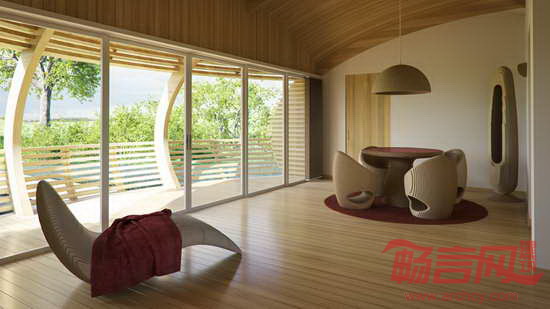 水平面的升高将改变这个世界。除了适应这种改变,人类别无选择。伦敦Ecoflolife公司专注于设计生态友好的漂浮住宅。公司目前推出了“水巢100”项目。该建筑面积100平米,直径12米,高度4米,完全采用回收层合板和回收铝壳。浴室位于水巢一侧。大面积窗户赋予住宅全景视野。浴室和厨房都设有天窗。顶部设有60平米太阳能板,可生成4kwp电能。设计师可根据客户要求定制,包括办公、吧台、餐厅、零售和展示空间。