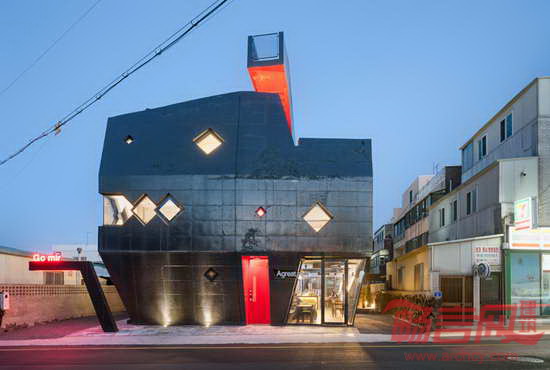 Moon Hoon工作室设计了位于韩国济州岛旅游胜地的GO.MIR旅馆。项目标志是一个俯瞰周边环境的高层观景台。建筑共有三层,其名称来自业主姓名,利用有限预算创造了带有咖啡馆、私人住宅的旅店空间。项目形态符合高密度城市街区要求,出于通风和采光考虑设置了中庭空间。