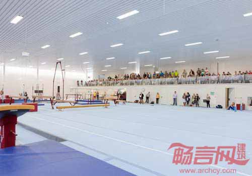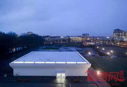 NL建筑工作室设计了位于荷兰Utrecht的体操馆。体育馆没有窗户,不过墙壁向外延伸,阳光可以从建筑上方进入室内。