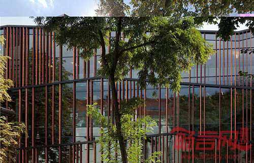 外部百叶板条覆盖了部分封闭的公园区域。花园屋顶采取了穿孔形式,便于现有树木自由生长。建筑覆盖了所在城市街区的大部分面积,容纳了外部空间以及包含剧场、音乐厅、图书馆、咖啡厅和教师区域在内的灵活空间。建筑设计考虑到了今后租户的多种可能性,空间能够适应影片摄制、小型戏剧制作以及交响音乐会等用途。