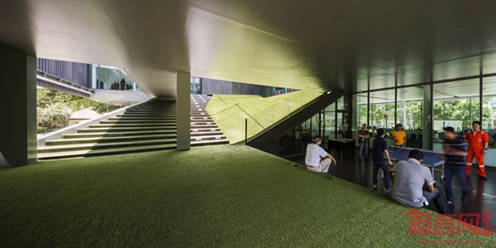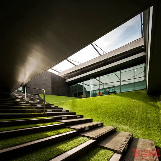 泰国国家石油公司(PTTEP)几年前组织了一场设计竞赛,要求为诗丽吉石油开发项目30周年纪念设计一座二层建筑。AT工作室赢得了比赛优胜,得到了设计PTEEP S1办公楼的机会。项目场地位于Kamphaeng Pet省油田的入口,场地面积达2000平米。两层建筑成为公司研究机构的主要办公地点。室内区域也又AT设计,体现了公司最重要的产品元素:石油。巨大的深色混凝土板令人联想原油的外形。
