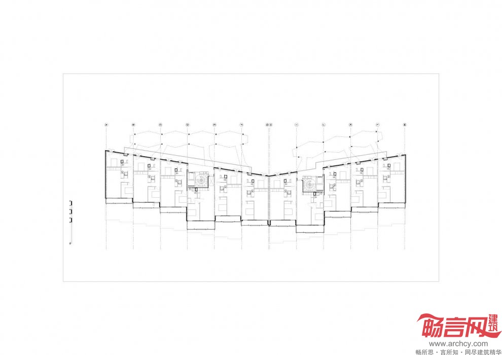 社会住房Boreal是由11栋房子并排着拼接起来的,主要分为两个部分:一部分为出租房(6栋),另一部分为出售房(5栋),这两部分之间形成了一个21度的折角。