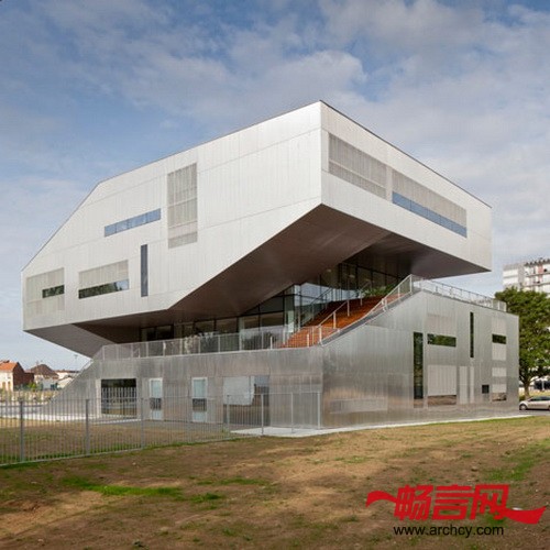 来到里尔南郊的人们不可能不注意到建在这里的螺旋形的L’Arbrisseau社区中心。螺旋形的外观设计,沿着建筑侧面呈螺旋形向上伸展的楼梯和铝质幕墙,使这座社区中心看起来就像一架空间飞船,让它在众多建筑中脱颖而出,成为建筑之魁。这些标新立异的元素,使该社区中心那断裂形的、甚至有点看似不像城市环境中的建筑一样的外观与其它建筑形成了鲜明的对比,但是这些元素却带来了惊喜,包括建筑后面直线形的向日葵游泳池等等。